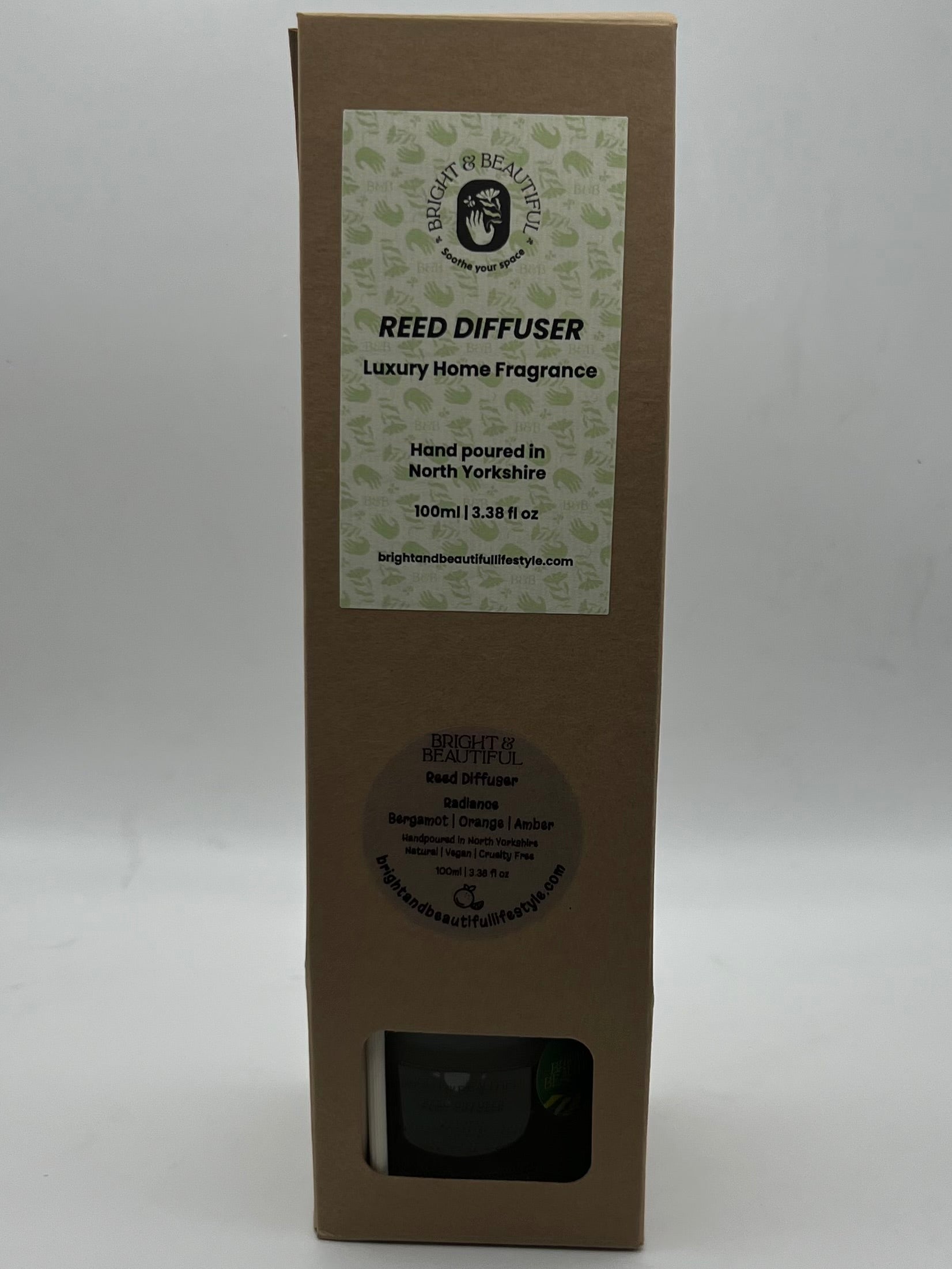The diffuser and reeds are packaged in a Kraft box for protection and shipping.
