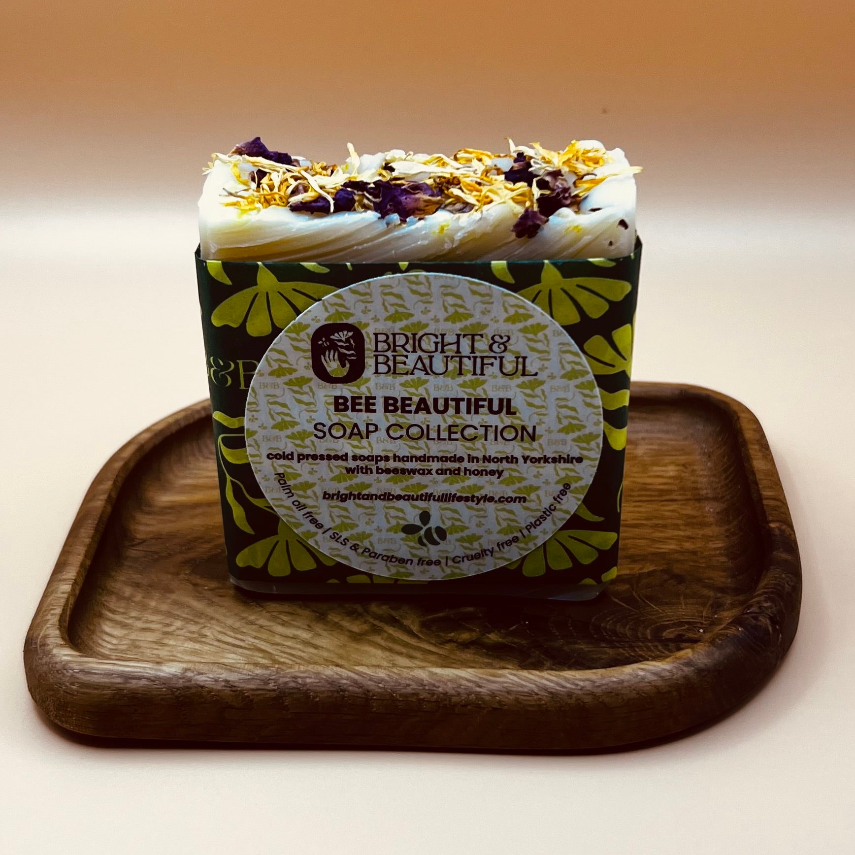 This soap bar is part of the "Bee Beautiful" soap collection. which celebrates the nourishing world of bees. Each soap bar is handcrafted with a rich, palm-free base of high-oleic sunflower oil, coconut oil, shea butter and beeswax , finished with a touch of raw honey for lasting moisture and a naturally warm glow.